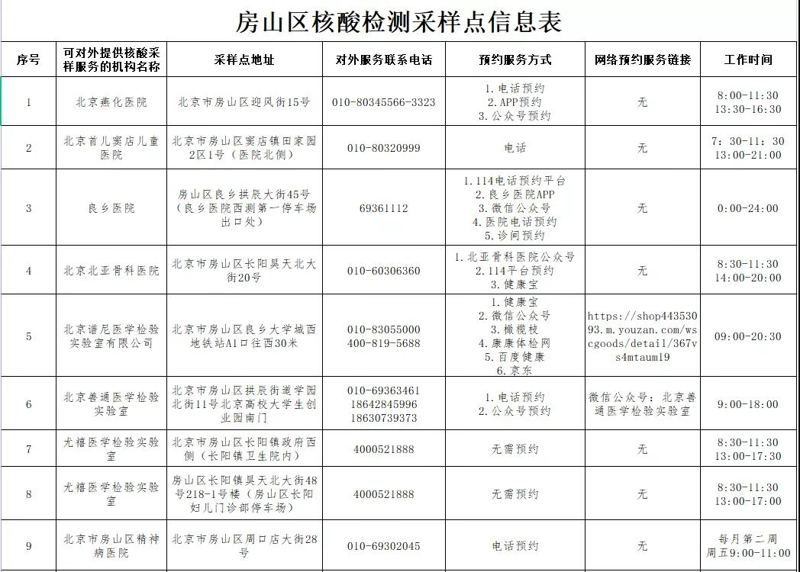 方興君提示您,當前房山區核酸檢測采樣點信息有更新,現整理出來,供各位建房業主參考。